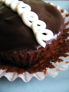 Everytime I give Meg a cupcake, she takes the top off...turns it upside-down and creates a cupcake sandwich. I figured I would make it easier by creating a version of the Cupcake Sandwich already made as an option. Since it is similar to a Drake's "Devil Dog," this one is made with Devil's Food Cake and Vanilla Buttercream.